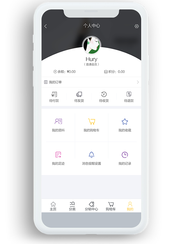 微商城所有的订单状态一目了然,支持在线申请退款/售后,收件地址的灵活编辑,个人优惠券、积分的管理等。